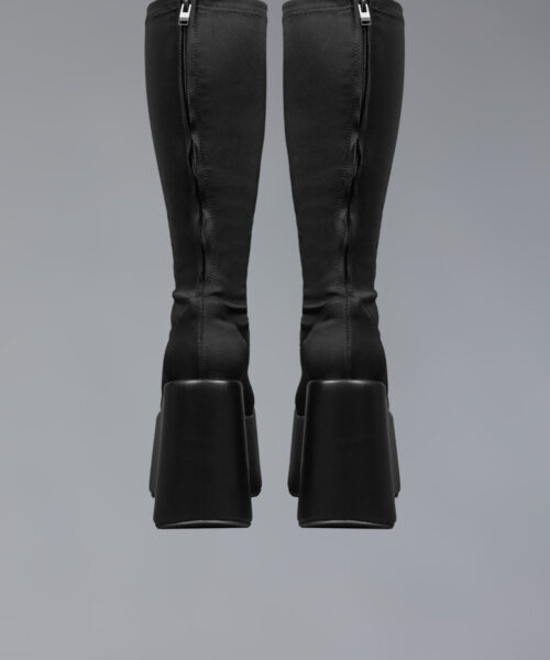 Neoprene sock platforms with a super stacked sole and a tonal UNIF zipper up the back.