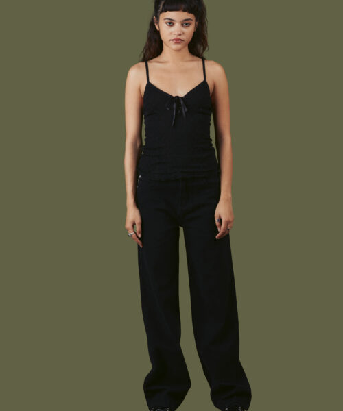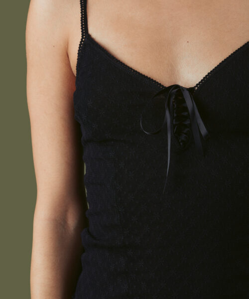 Double layer mesh tank top with adjustable straps and a center lace up front.