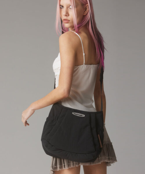 Simple crossbody bag with multiple compartments and pockets. UNIF branded tag on the front flap. Perfect for work or light travel. Measurements are 13″ x 10″ x 4″