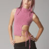 A high-neck knitted tank with cutouts along the waist and neck and added tassels for securing. It can be worn as is or layered for full coverage. Comes in multiple colorways.