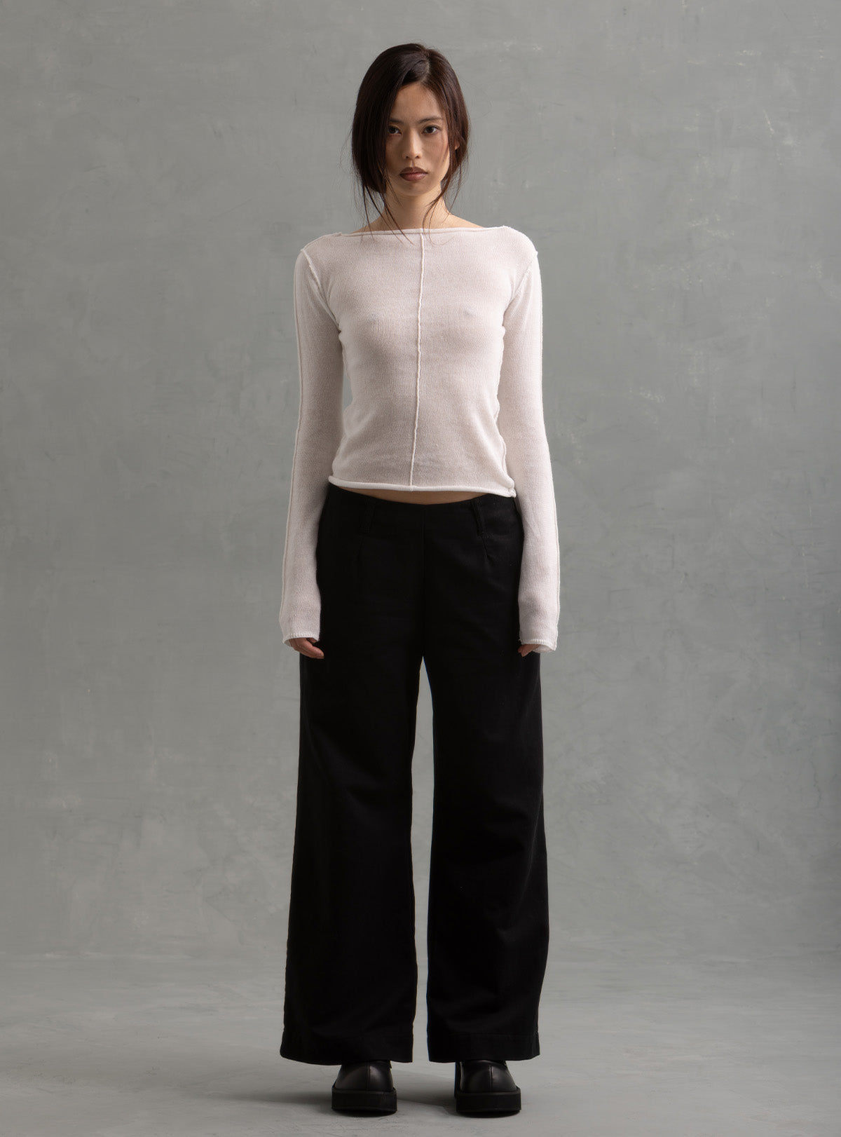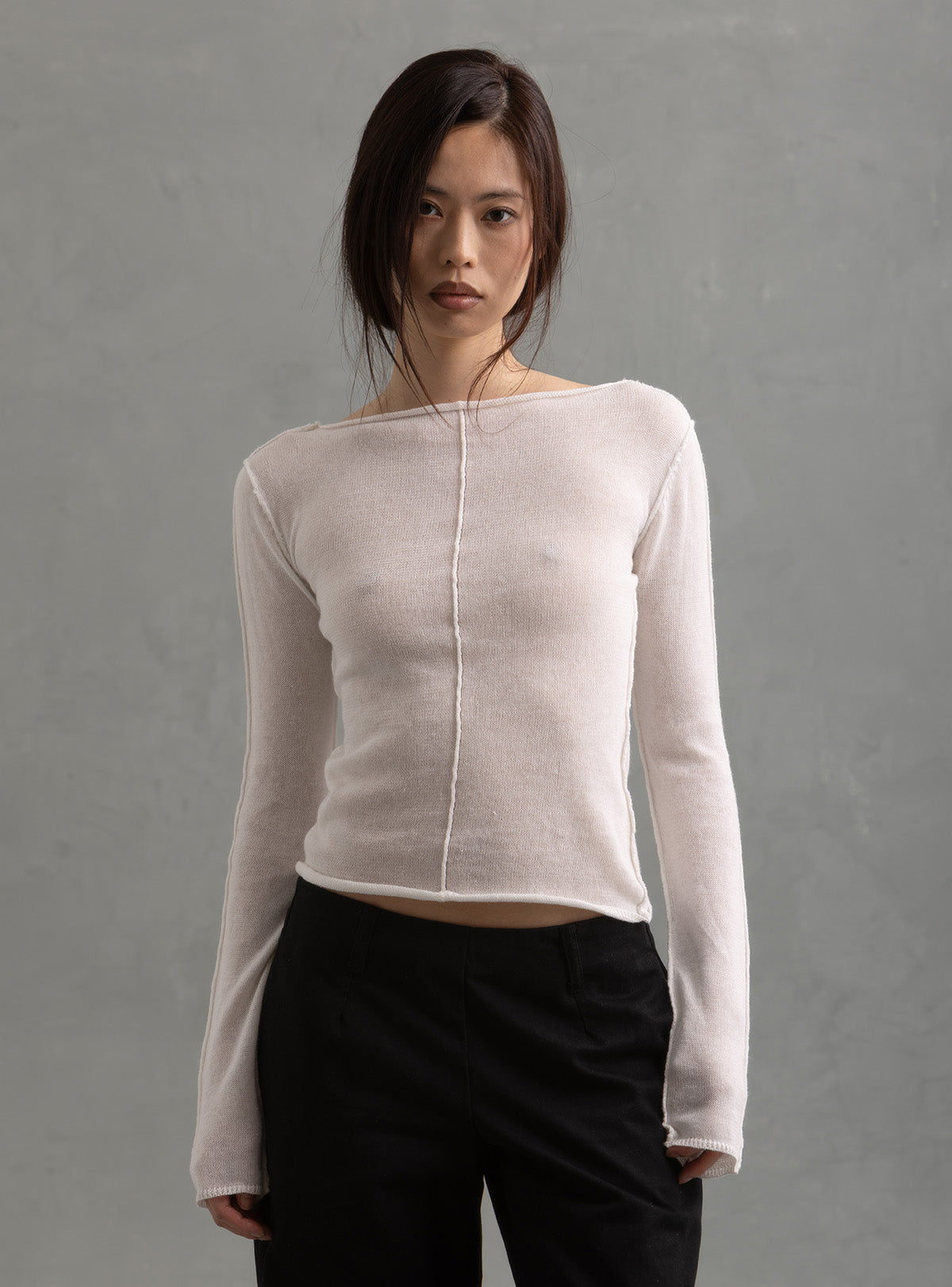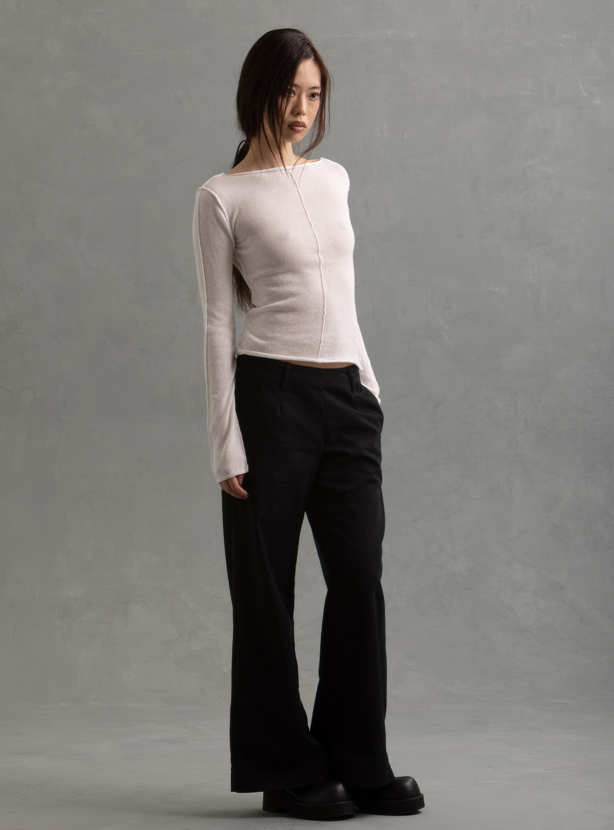 An update to our classic Flax long sleeve top knitted from a premium cotton–linen blend with a soft, natural texture. It features a square neck and reverse seams along the center front and sleeves. Linen is believed to carry a naturally high vibration and a grounding, purifying energy which is why it has been worn by monks and spiritual practitioners for centuries. A minimal subversive basic that quietly grounds you and centers your aura.