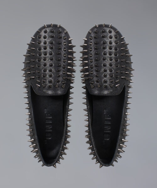 The UNIF Hellraiser is back. Now is the time to get your hands on the cult-classic spiked flat. Leather slip-on completely covered in metal spikes. Please note that they run in U.S. Women’s sizing.