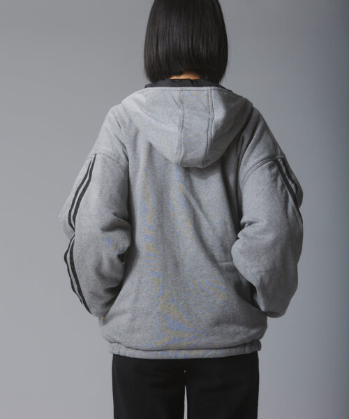 Reversible sportswear jacket (no sports required, or desired TBH). UNIF sportswear patch branding on the chest with reflective stripe detailing on the arms (blackside). Full zip front with front welt pockets and a hood. Fit is oversized but we recommend taking your normal size.