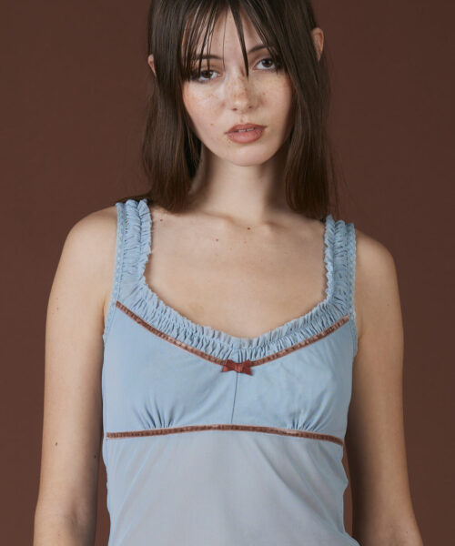 Drift into a dreamscape with this ethereal mesh top; a delicate fairycore empire waist adorned with plush velvet detailing that adds a whisper of vintage romance.
