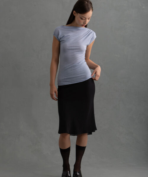 This elevated and simple top is made from an ultra-soft 100% Cotton fabric milled in the USA. It features an elegant cap sleeve on the right arm and a gentle drape across the neckline with subtle ruching on the left shoulder. This top is also offered in white and vintage black.