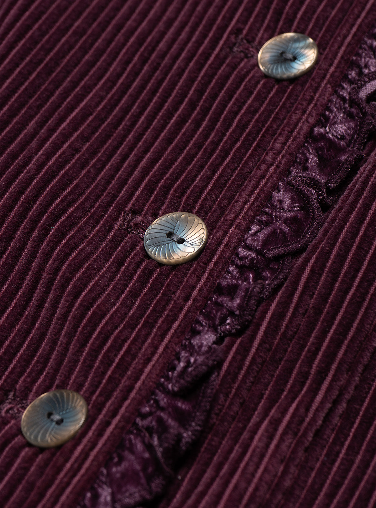 Velvet ruffle trimmed #cottagecore #romantic corduroy jacket in a deep plum.