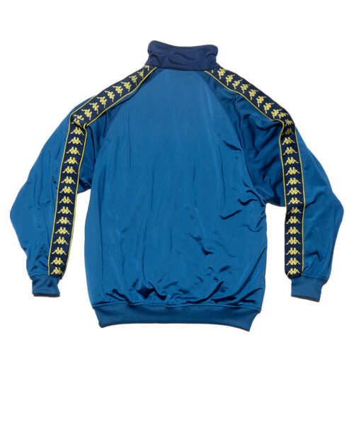 Gabber hardstyle vintage Kappa Jacket in blue with logo tape on sleeves on logo embroidery on the chest.