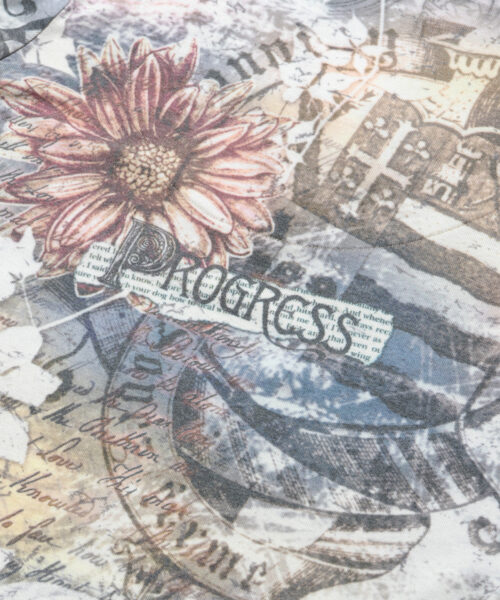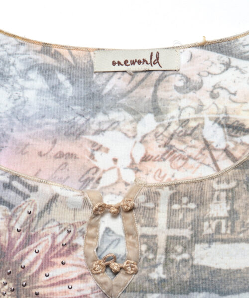 Very soft waterbased printed cotton rib top. Finished edges. Small chest detail.