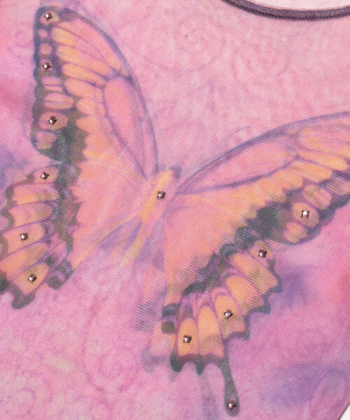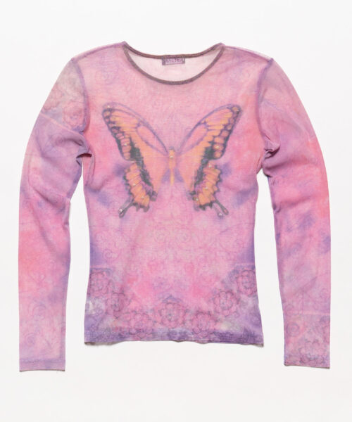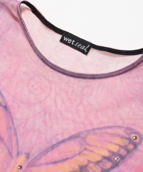 Y2K Wet Seal Mesh Butterfly Long sleeve top in etheral pink with rhinestone detailing. Super .·:*¨༺ magical ༻¨*:·.