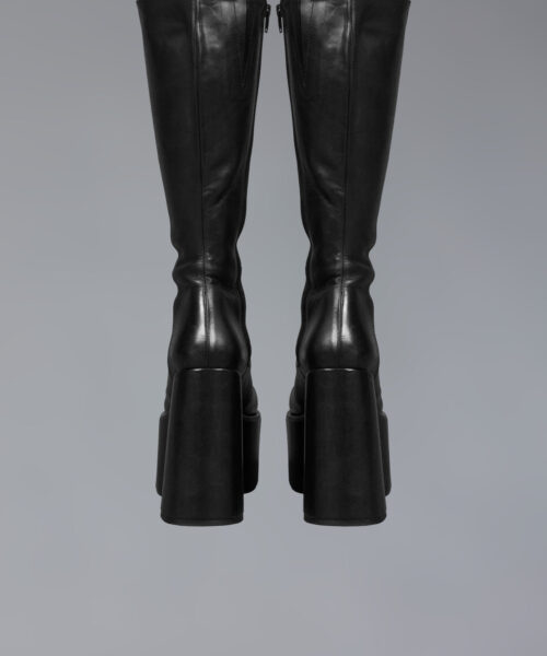 Stacked leather platform boots with inside zipper for easy access. Leather is super soft and will break out with wear. If you are a 1/2 size we recommend sizing up to the next biggest size.