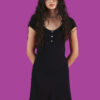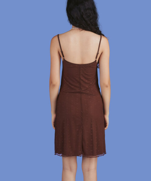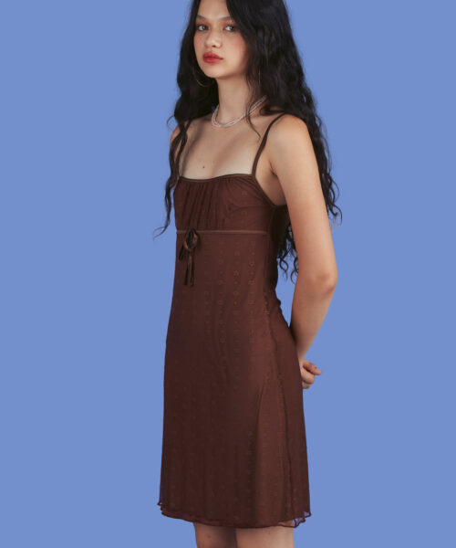 Double layered mini dress with floral mesh outer layer and satin bow detail at the bust. Material has a bit of stretch for a comfortable fit and feel.