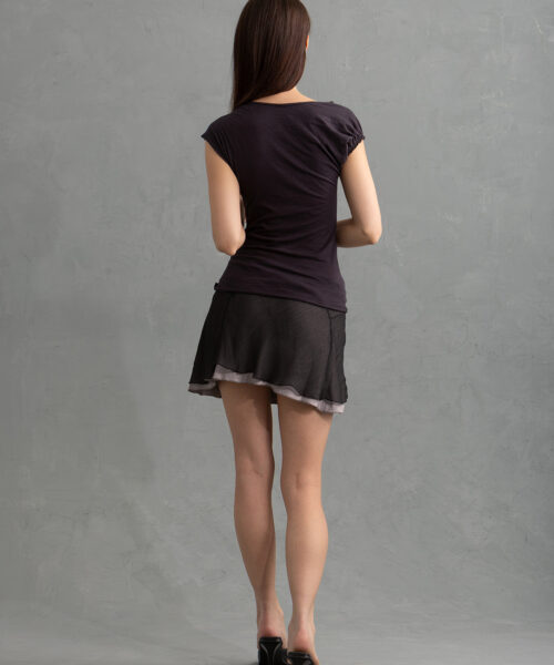 This elevated and simple top is made from an ultra-soft 100% Cotton fabric milled in the USA. It features an elegant cap sleeve on the right arm and a gentle drape across the neckline with subtle ruching on the left shoulder. This top is also offered in white and light blue.