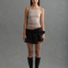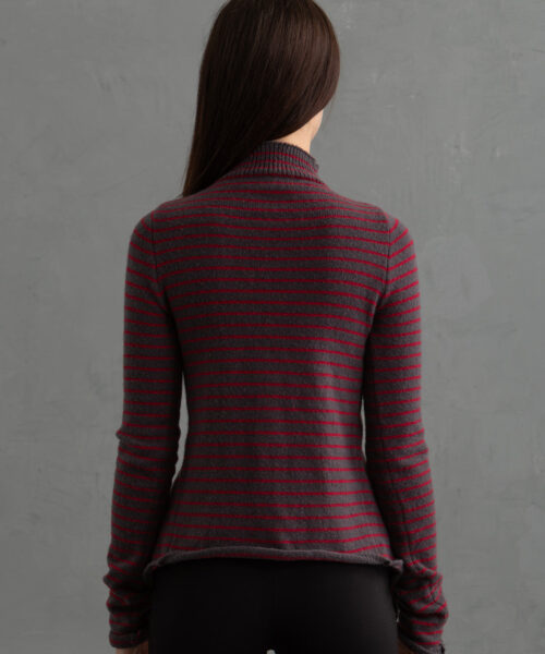 Grey and Red striped version of this open front cardigan with full length sleeves and modern-day romantic high neck. Sultry, sleek and minimal. Perfect for layering or not. Paired with the Bobbin Mini Skirt.