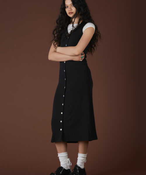 An update to one of our favorite dresses. The Parker Maxi is full length version of our Parker dress featuring princess seams in a stretchy material that has mother of pearly button up the entire front.