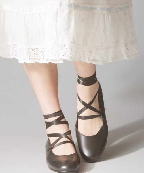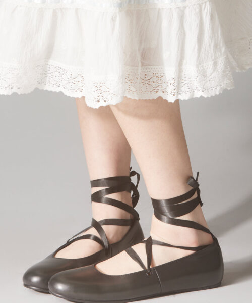 Supple leather ballet flat with a slightly rounded toe and 60-inch crossover satin strap detailing. Fit is true to size.