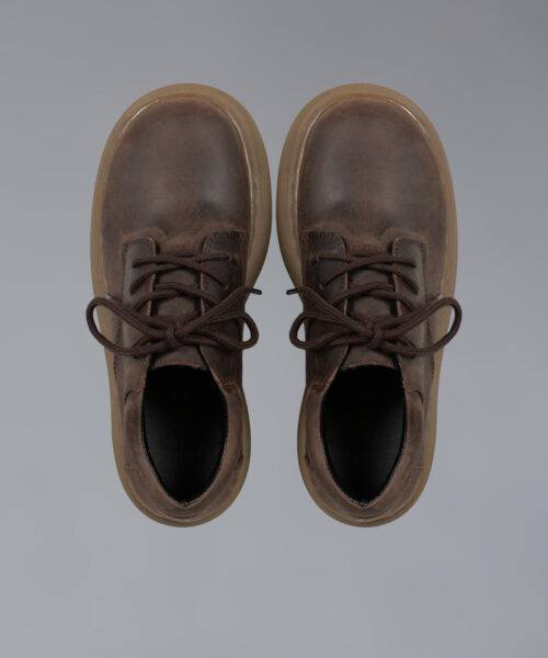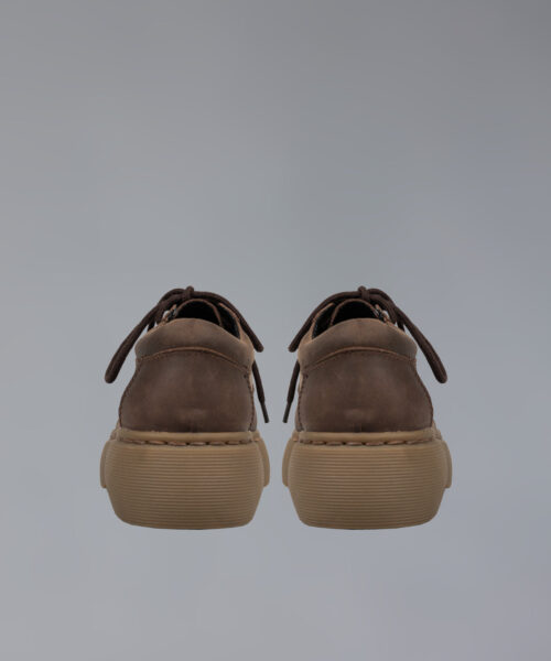 New Colorway! The Pek Shoe is a platform oxford low-top shoe with contrast stitching at the sole a rounded comfort insert at the ankle and a rounded 90’s toe box. Buttery soft leather upper and insole with a rounded and ribbed solid rubber sole. Platform measures 1″ at the front to 1.5″ at the heel.