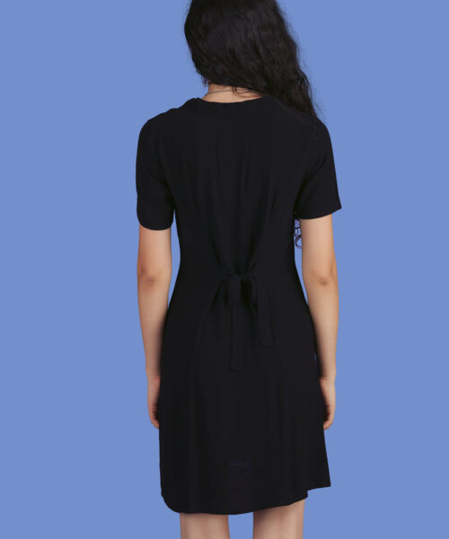 Beautiful rayon dress with mother of pearl front button closure. Material is light, flowy and slightly sheer. Fit is true to size.