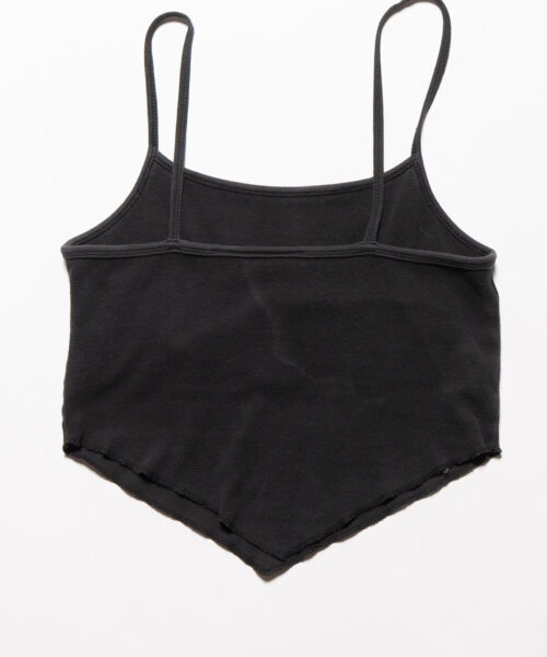 Cropped fit featuring a handkerchief cut in the front and back with a built in sports bra.