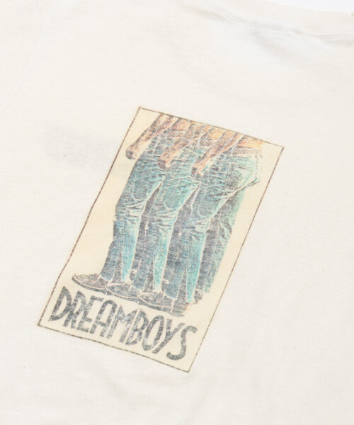 90’s Vintage white Dreamboys Tee. Seems to be homemade by iron on. Made in USA on ScreenStars tee 50% Poly 50% Cotton.