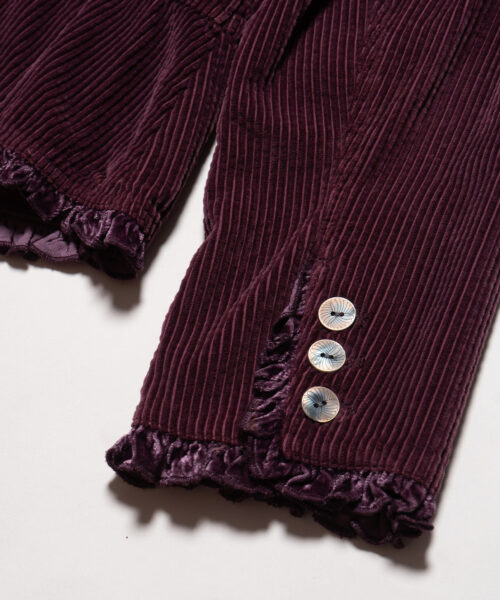 Velvet ruffle trimmed #cottagecore #romantic corduroy jacket in a deep plum.