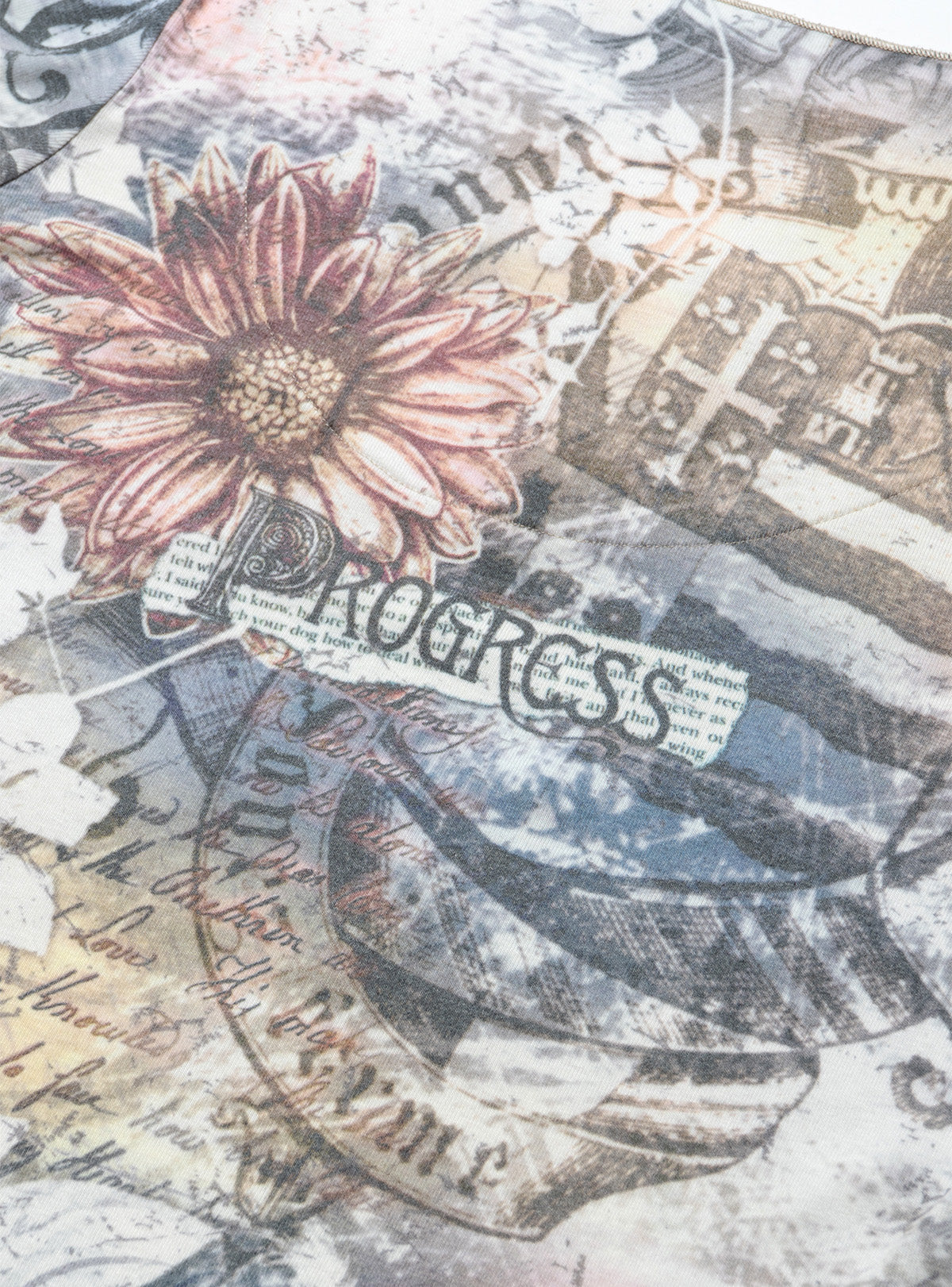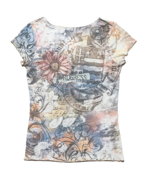 Very soft waterbased printed cotton rib top. Finished edges. Small chest detail.